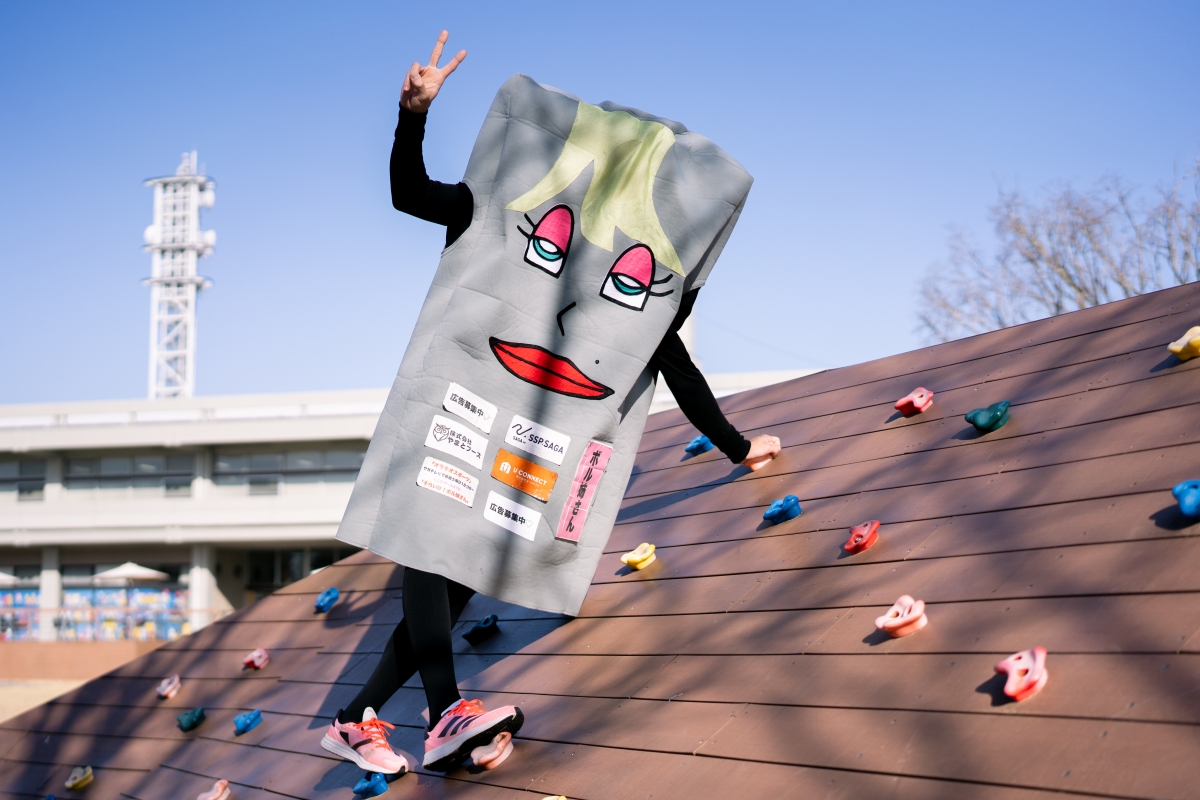 ボルダリングの壁の妖精「ボル姉さん」が佐賀にやってきました